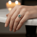 Smaragd betekent letterlijk ‘groene steen’ (Gr. smaragdos). De kleur groen van dit mineraal is onvergelijkbaar mooi. Het is niet voor niets dat smaragd een koninklijke uitstraling heeft. Juwelier Christian heeft een uitgebreide collectie sieraden met smaragd. De smaragd in deze ring is heldergroen van kleur met een glasachtige glans. Smaragd is gewild vanwege de fijne uitstraling. Deze edelsteen past bij elke stijl.