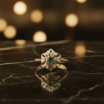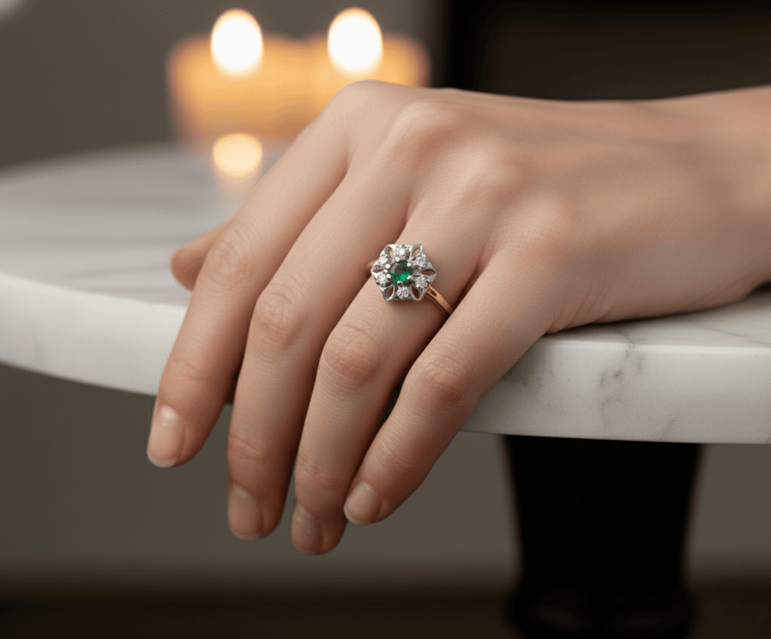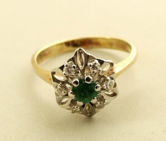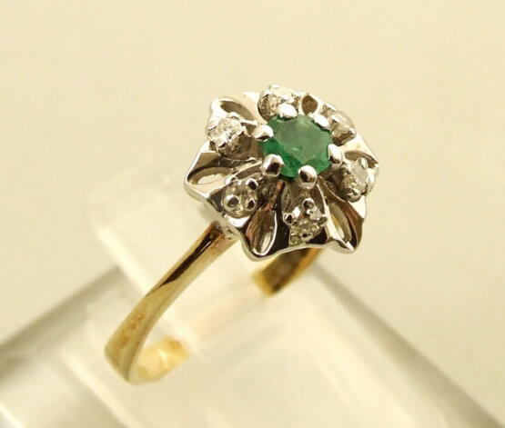 14 karaat gouden ring met smaragd en diamant