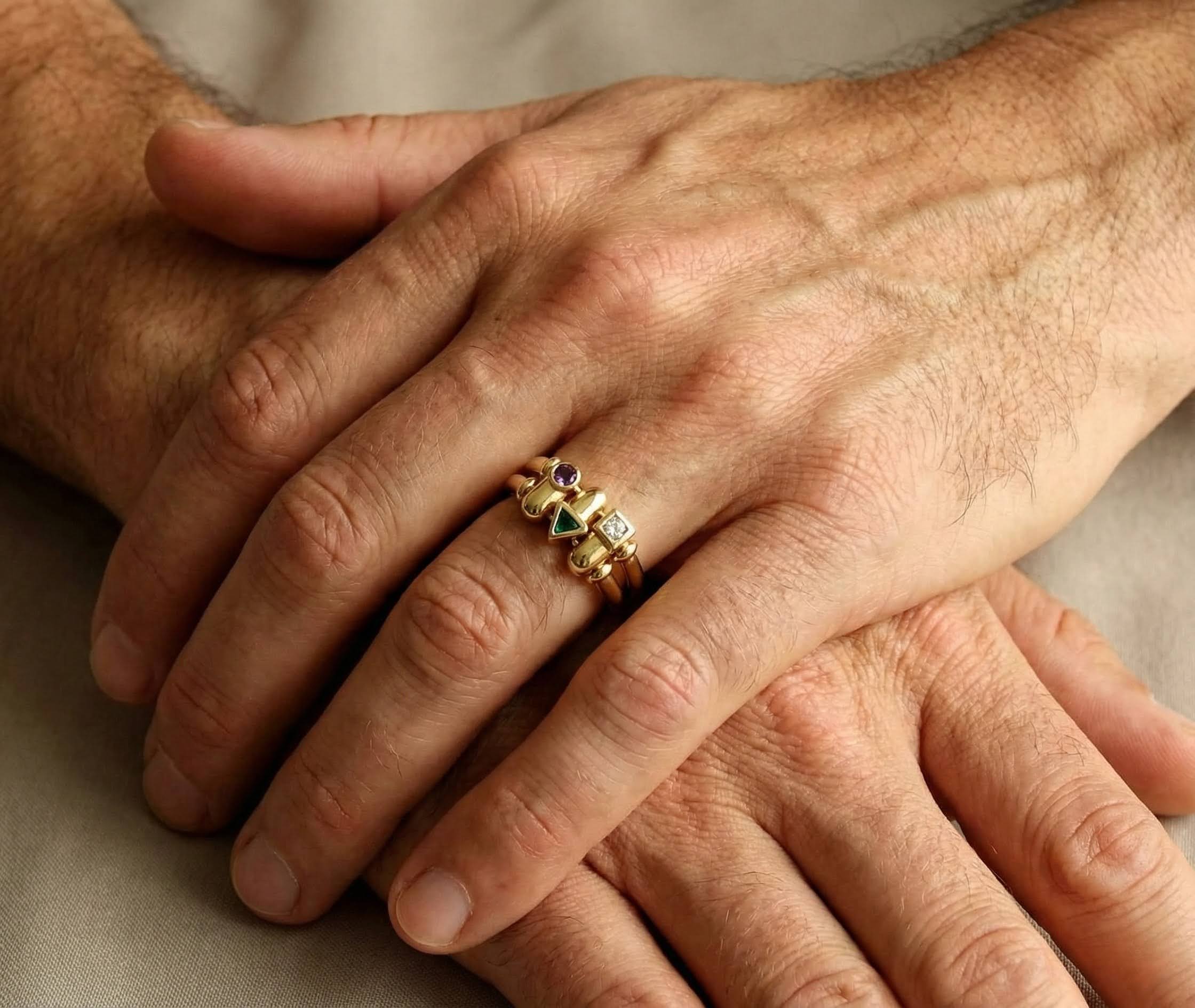 De edelstenen in deze ring zijn de glansstukken van talrijke koningen en koninginnen geweest. Schitter vandaag en bestel deze 18 karaat gouden ring met diamant, smaragd en saffier online bij atelierchristian.nl!