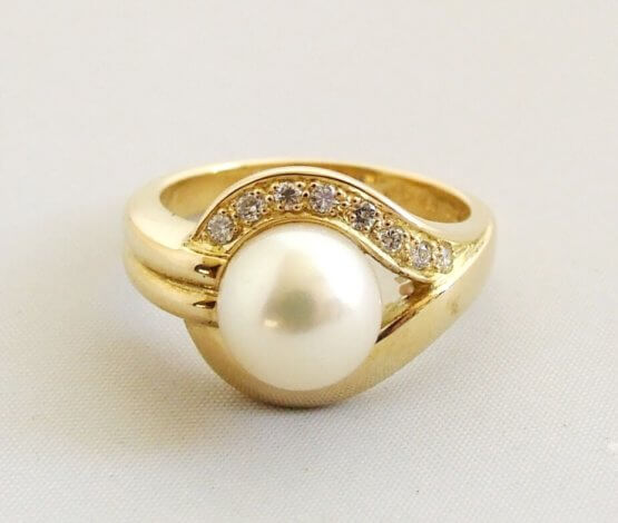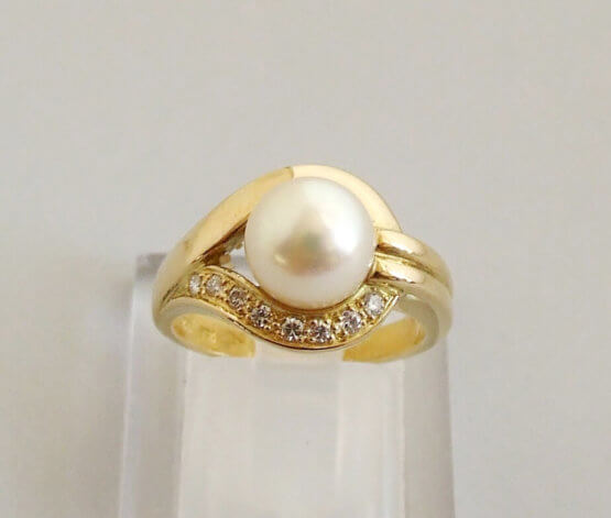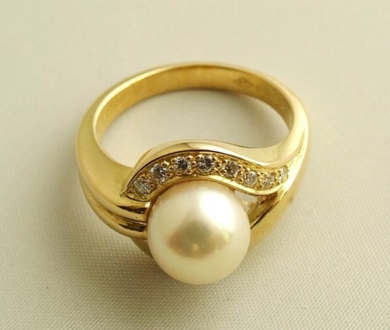 De 18 karaat gouden ring met parel en diamant ring is een prachtig sieraad om te dragen.