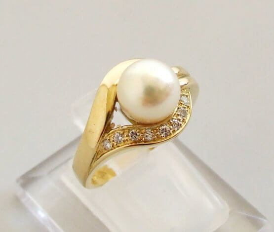 Draagt u graag geel gouden ringen? Bestel uw 18 karaat gouden ring met parel en diamant direct via atelierchristian.nl!