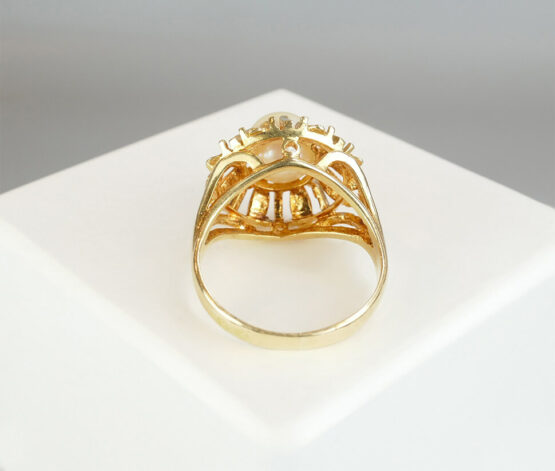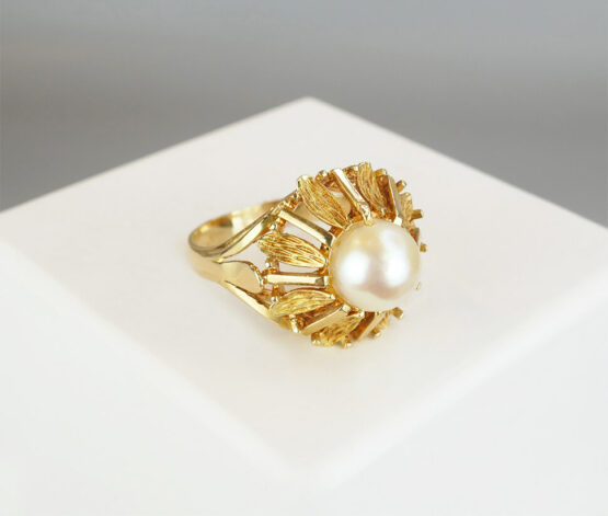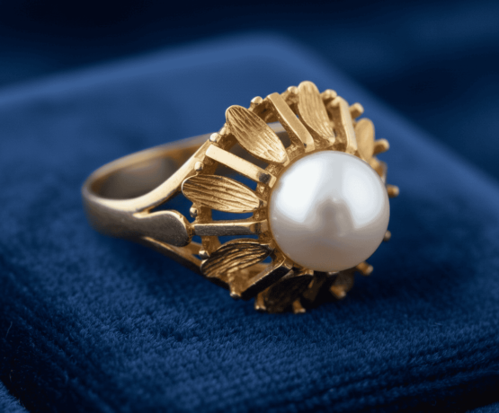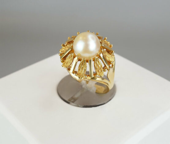 Deze 18 karaat gouden ring met parel is een prachtig sieraad om te dragen.
