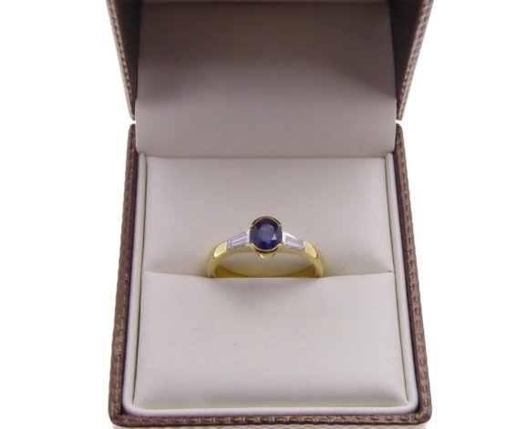 De 18 karaat gouden tanzaniet en diamanten ring is een prachtig sieraad om te dragen.