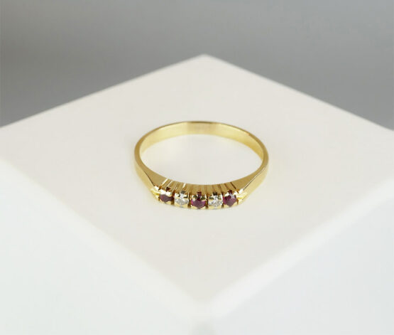 Deze alliance ring met robijn en diamant is een prachtig sieraad om te dragen.