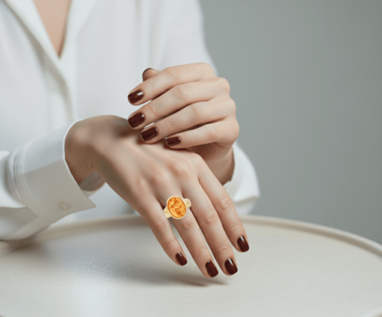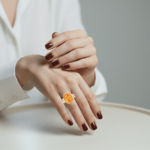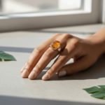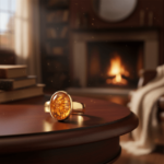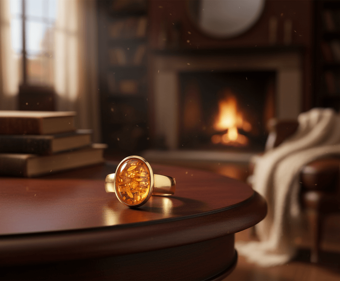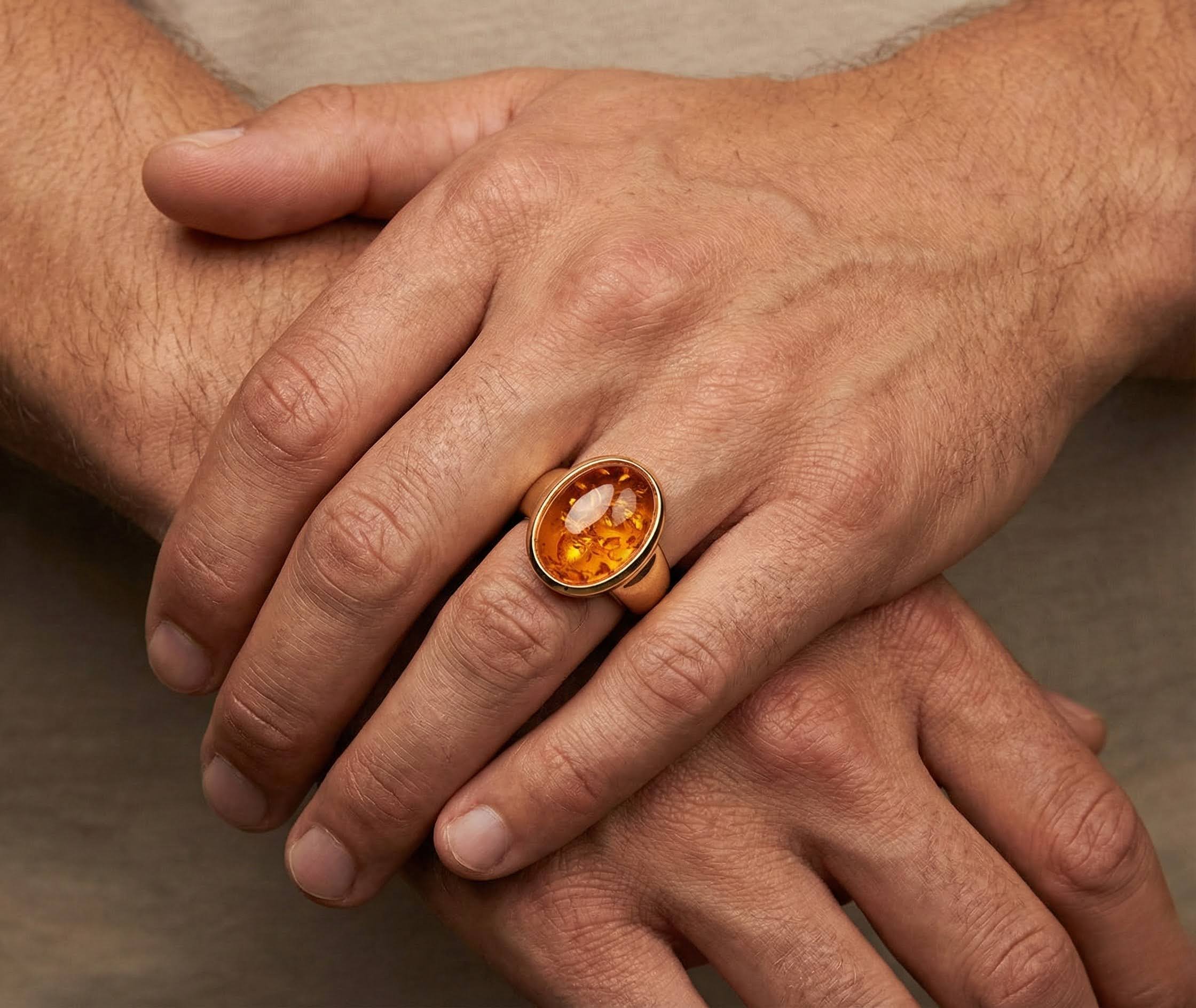 De Christian Design gouden ring met barnsteen is een prachtig sieraad om te dragen.