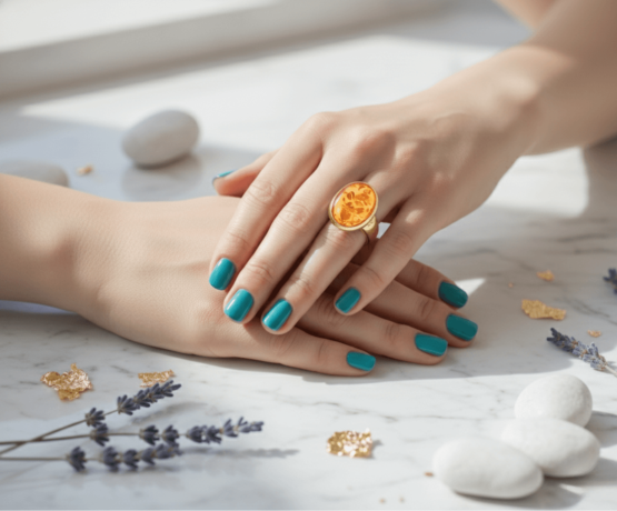 Barnsteen is een fossiele hars die afkomstig is van naaldbomen. Deze natuurlijke barnsteen heeft een mooie oranje kleur. De hars is miljoenen jaren geleden uit de bomen gedropen en daarna versteend. Door de mooie glans wordt barnsteen in verschillende soorten sieraden vervaardigd.