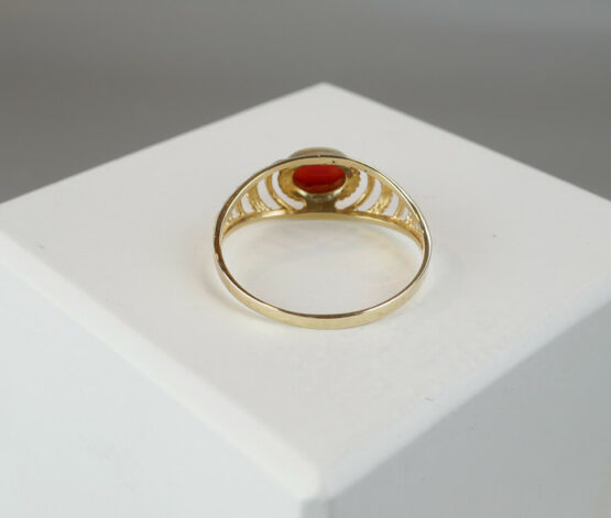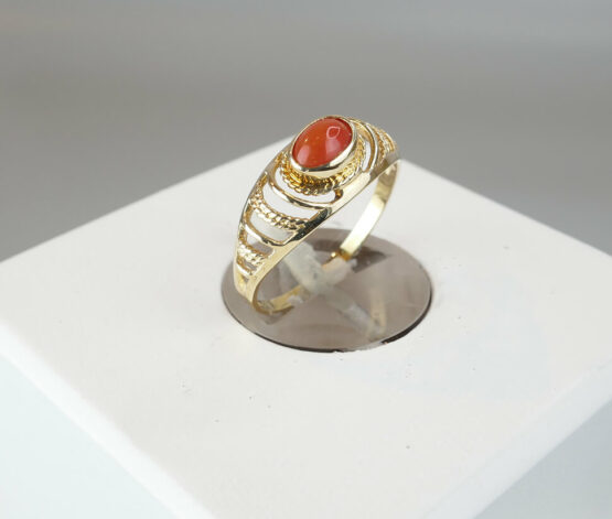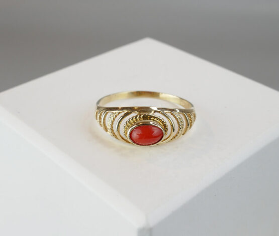 Deze Christian gouden ring met bloedkoraal is een prachtig sieraad om te dragen.