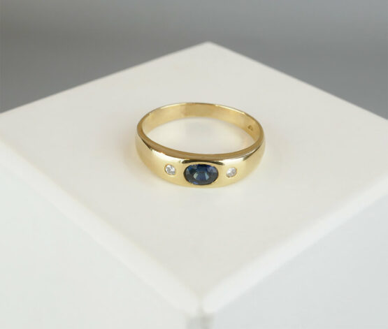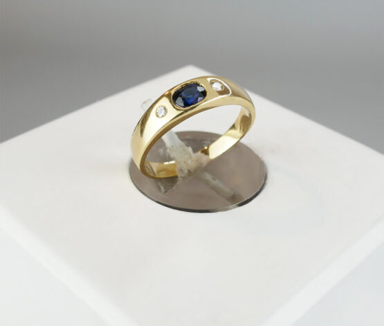 Christian gouden ring met saffier en diamanten