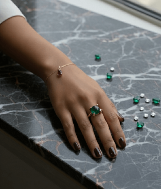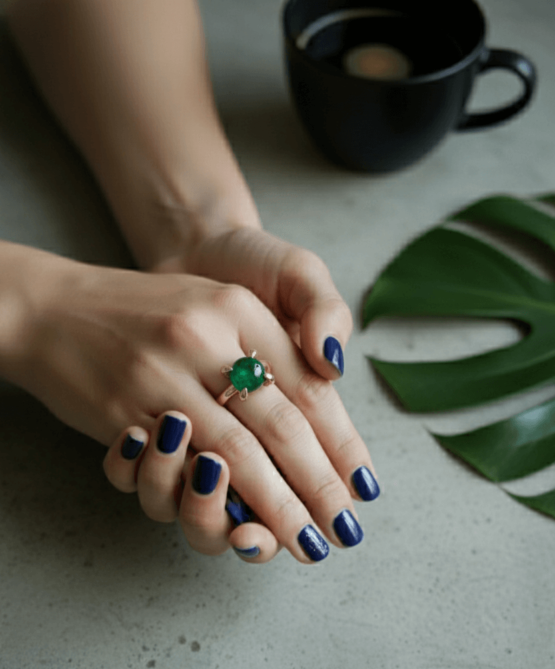 Emerald literally means “green stone” (Gr. smaragdos ). The green color of this mineral is incomparably beautiful. It’s no wonder emeralds have such a regal appearance. Jeweler Christian has an extensive collection of emerald jewelry . The emerald in this ring is bright green with a glassy sheen. Emeralds are sought after for their delicate appearance. This gemstone suits any style.