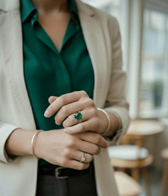 This Christian gold ring with emerald is a beautiful piece of jewelry to wear.