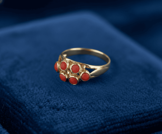 Deze Christian ring met bloedkoralen is een prachtig sieraad om te dragen.