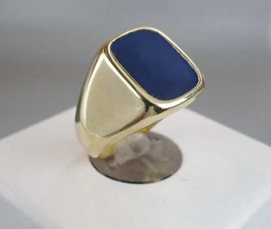 Lagensteen is de in de edelsteen-snijkunst gebruikte gelaagde materiaal. Een lagensteen wordt gesneden uit agaat. Agaat is een gestreepte halfedelsteen en een variëteit van het mineraal kwarts. Er zijn veel verschillende soorten kleuren, patronen en structuren lagensteen. De ring heeft een mooie licht- tot donkerblauwe kleur. Wilt u een gravure in uw lagensteen ring? De Goudsmid van Atelier Christian heeft jarenlange ervaring in gravure. Onze vakmanschap staan garant voor de hoge kwaliteit van het persoonlijke eindresultaat van uw lagensteen ring.