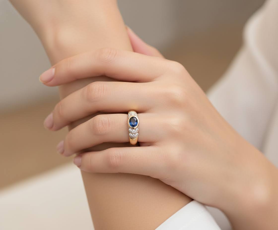 Bestel uw bicolor gouden ring met saffier direct via atelierchristian.nl!