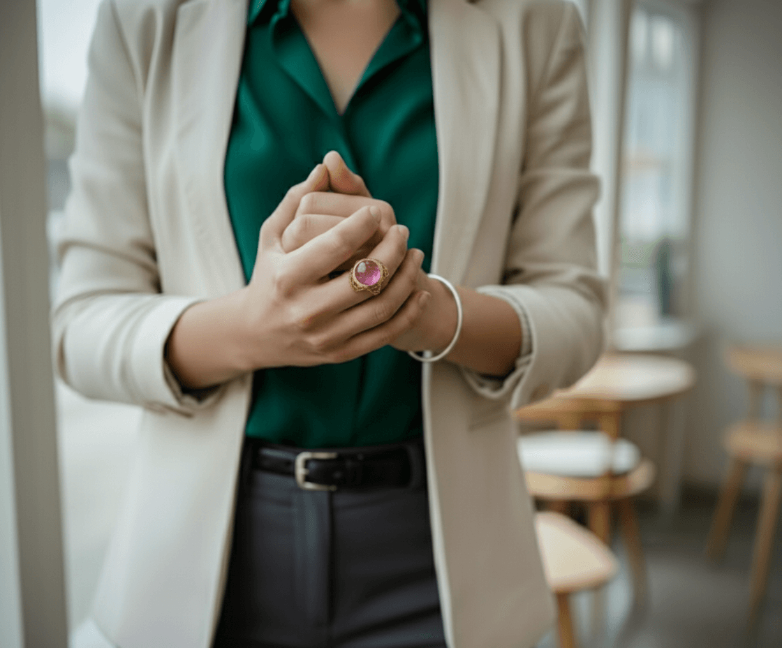 This Christian rose gold ring with tourmaline is a beautiful piece of jewelry to wear.