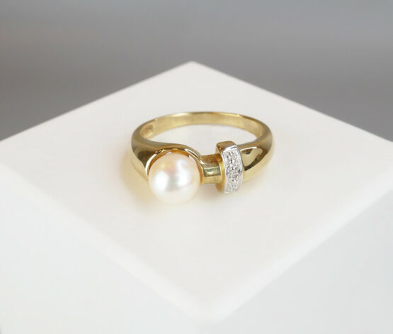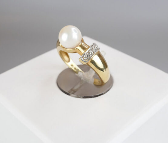 Deze fantasie ring met parel & diamant is een prachtig sieraad om te dragen.