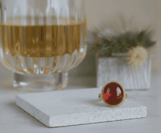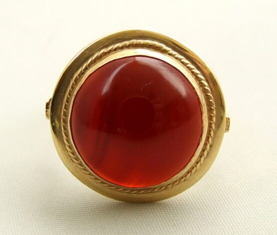 Agaat is een gestreepte halfedelsteen en een variëteit van het mineraal kwarts. Er zijn veel verschillende soorten kleuren, patronen en structuren lagensteen. De ring heeft een mooie licht- tot donkerrode kleur. Wilt u een gravure in uw agaat ring? De Goudsmid van Atelier Christian heeft jarenlange ervaring in gravure. Onze vakmanschap staan garant voor de hoge kwaliteit van het persoonlijke eindresultaat van uw agaat ring.