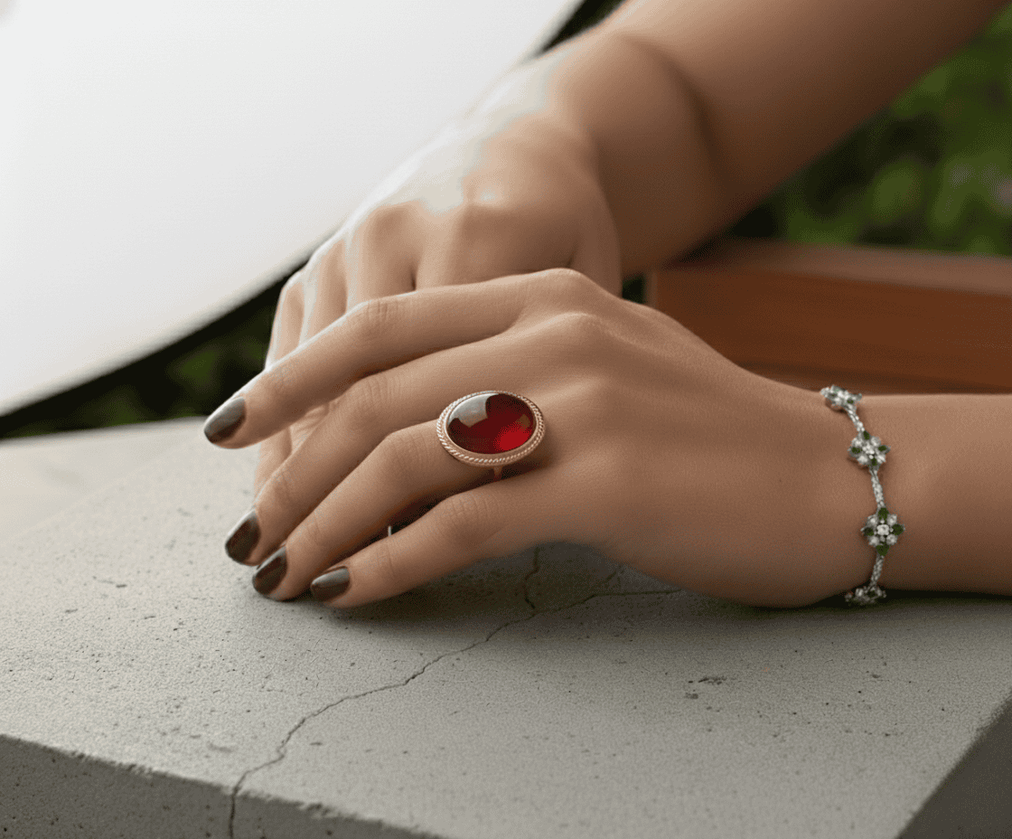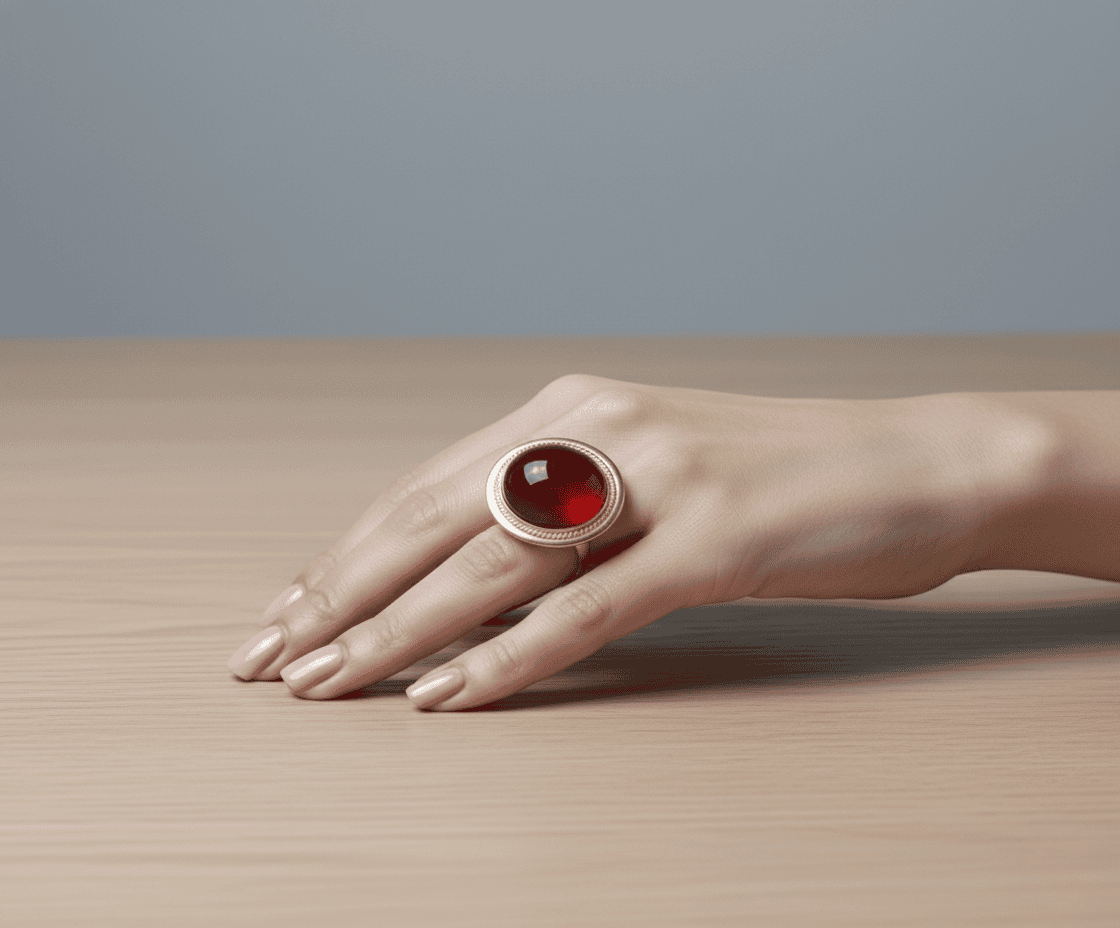 Agaat is een gestreepte halfedelsteen en een variëteit van het mineraal kwarts. Er zijn veel verschillende soorten kleuren, patronen en structuren lagensteen. De ring heeft een mooie licht- tot donkerrode kleur. Wilt u een gravure in uw agaat ring? De Goudsmid van Atelier Christian heeft jarenlange ervaring in gravure. Onze vakmanschap staan garant voor de hoge kwaliteit van het persoonlijke eindresultaat van uw agaat ring.