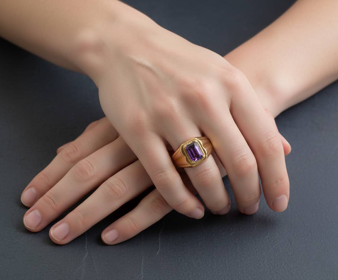 Bestel uw Christian 21 karaat geel gouden amethyst ring direct via atelierchristian.nl!