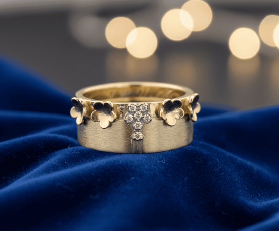 Deze geel gouden bloem model ring is een prachtig sieraad om te dragen.
