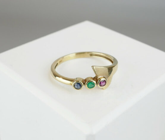 Bestel uw geel gouden ring met saffier, robijn en smaragd direct via atelierchristian.nl!