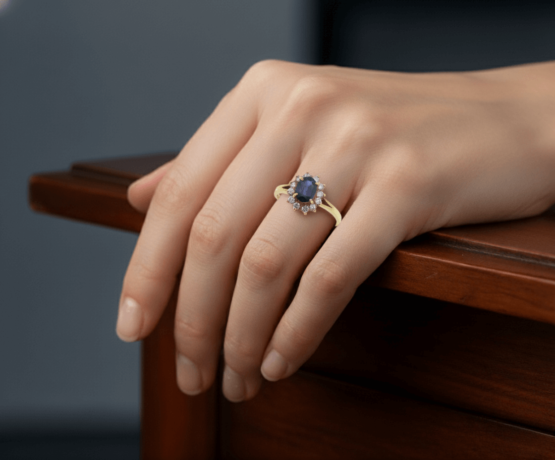 Deze geel gouden saffieren ring met diamanten is een prachtig sieraad om te dragen.
