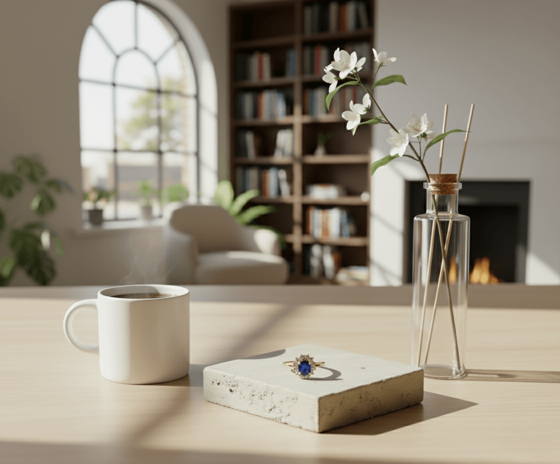 Deze geel gouden saffieren ring met diamanten is een prachtig sieraad om te dragen.