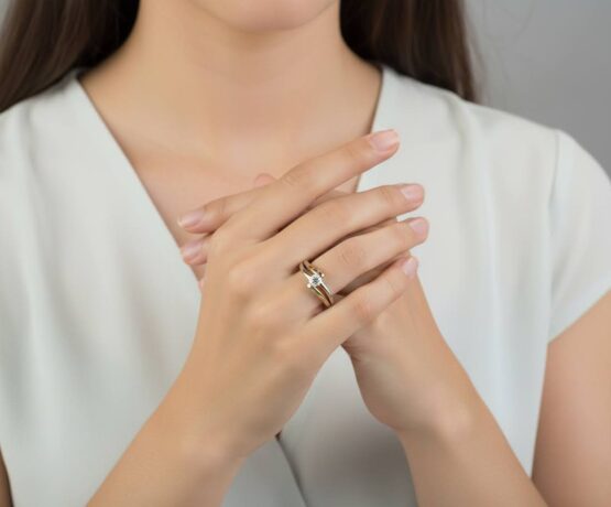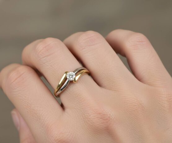 Deze gouden bicolor ring met diamant is een prachtig sieraad om te dragen.