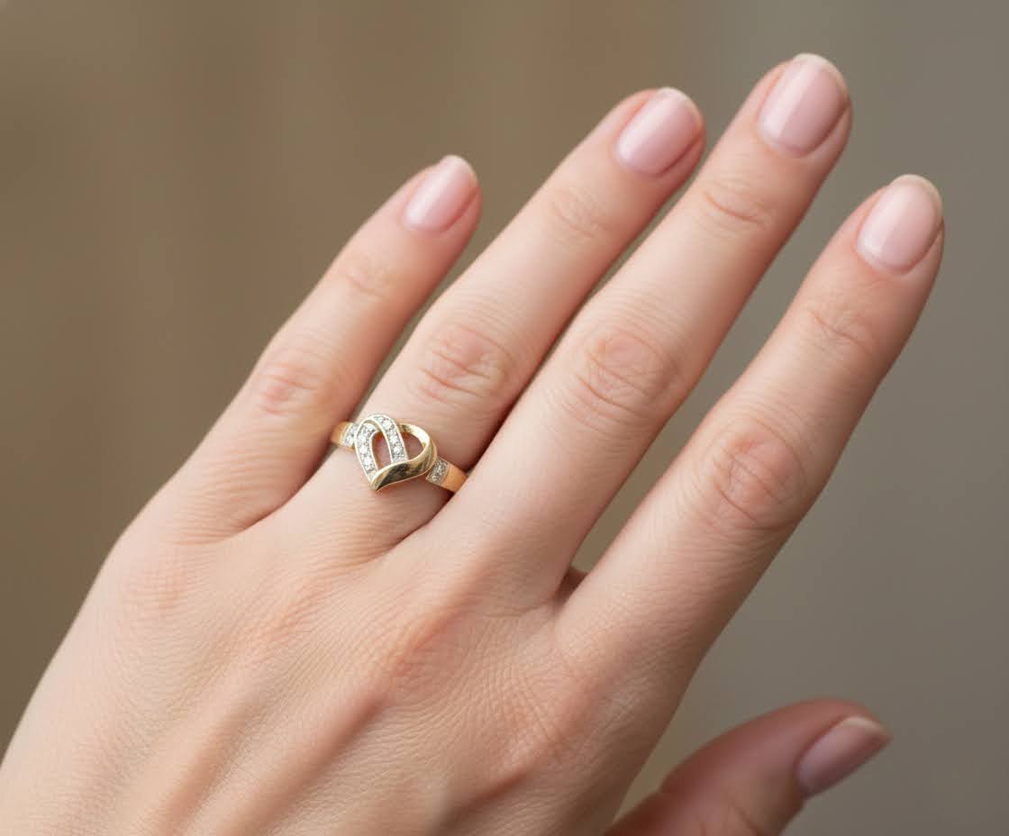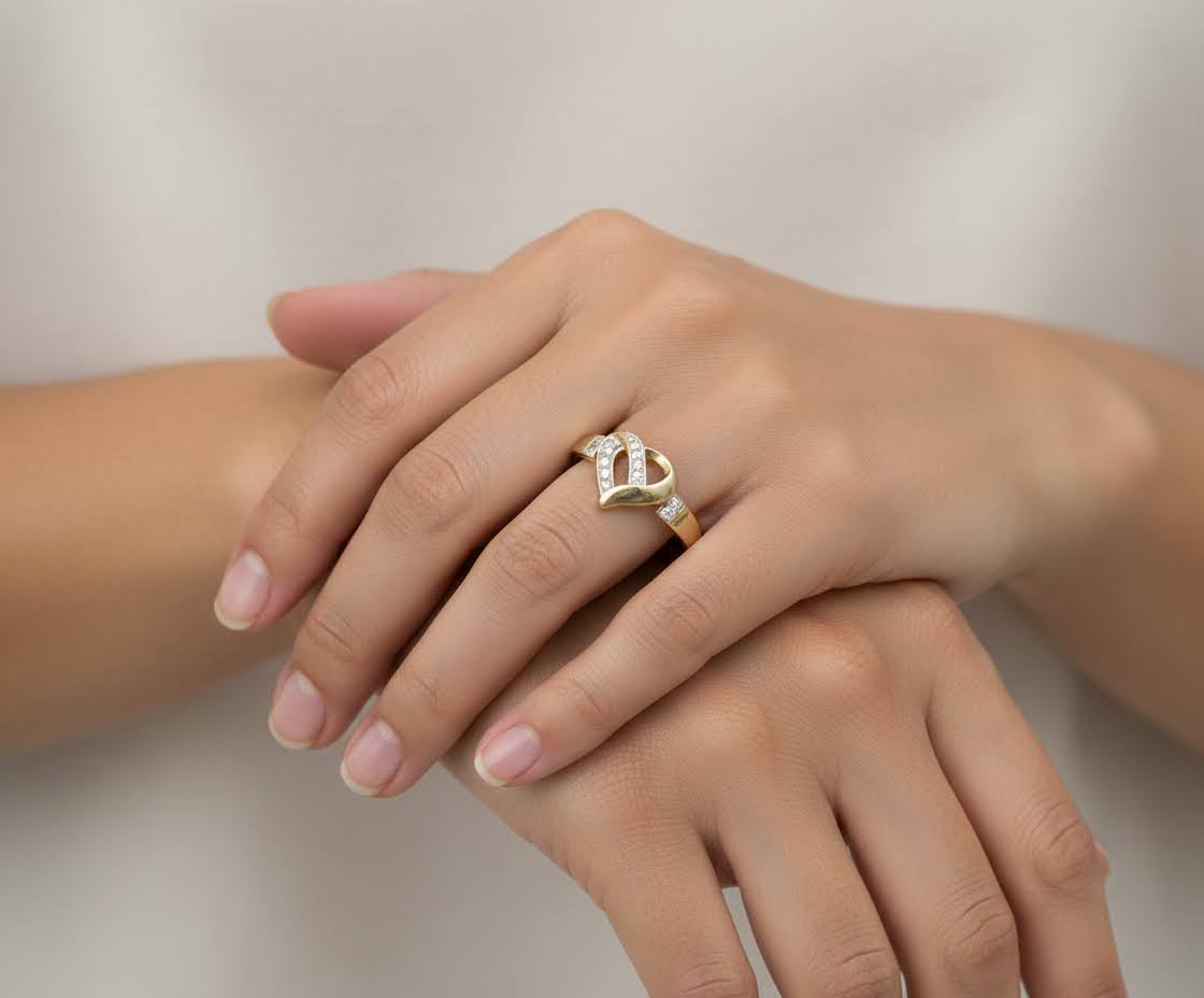 Deze gouden hart ring met diamanten is een prachtig sieraad om te dragen.