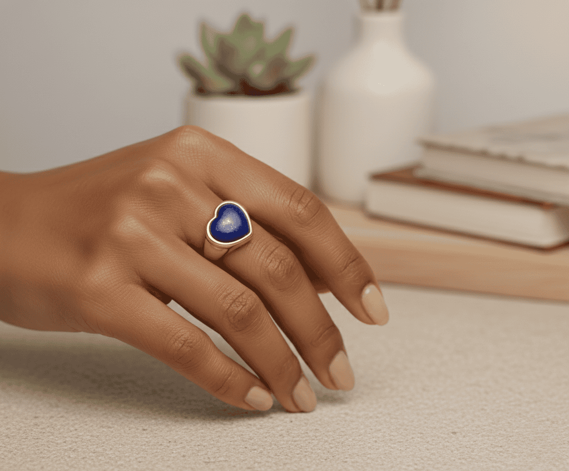 Gouden harten ring met Lapis Lazuli