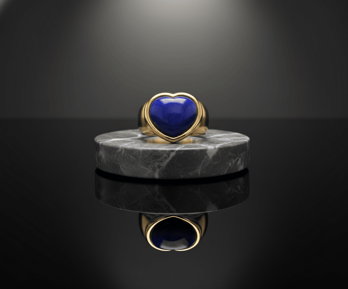 Deze gouden harten ring met Lapis Lazuli is gemaakt door de Meester in de Goudsmeden van Atelier Christian  ![]()