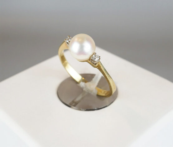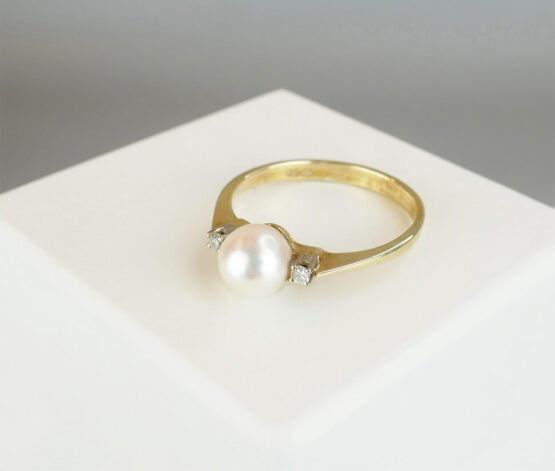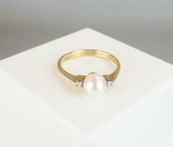 Deze gouden parel ring met 2 diamanten is een prachtig sieraad om te dragen.