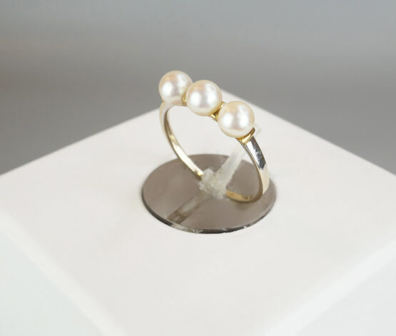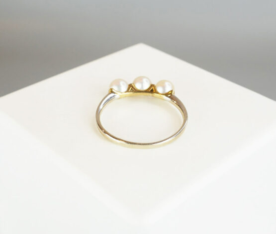 Deze gouden ring met 3 parels is een prachtig sieraad om te dragen.