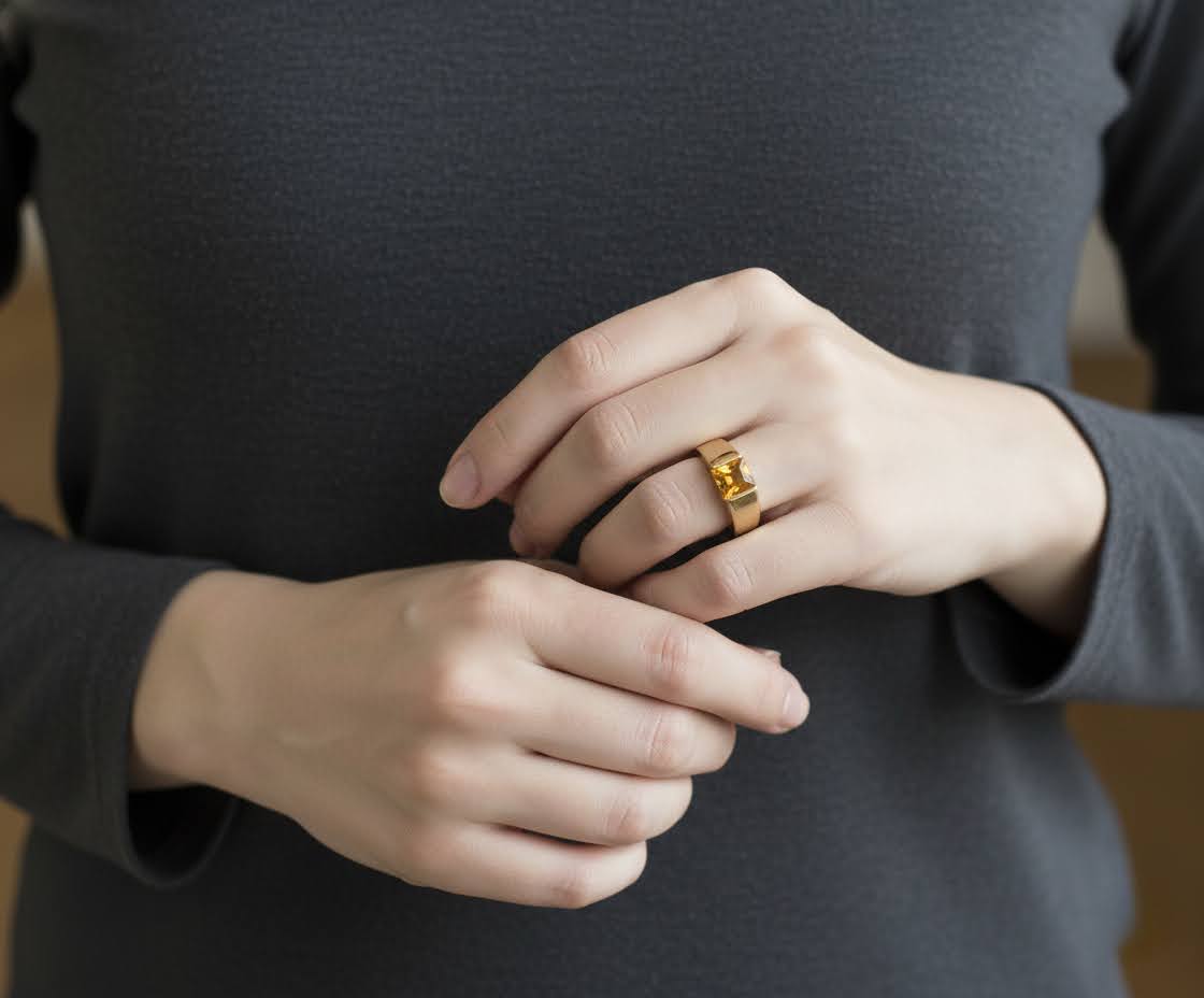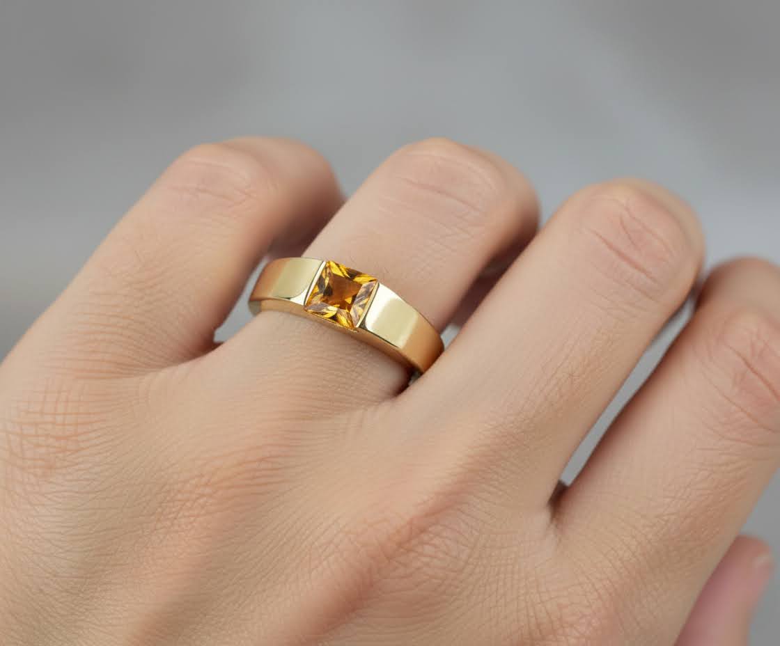 Deze gouden ring met caré citrien is een prachtig sieraad om te dragen.
