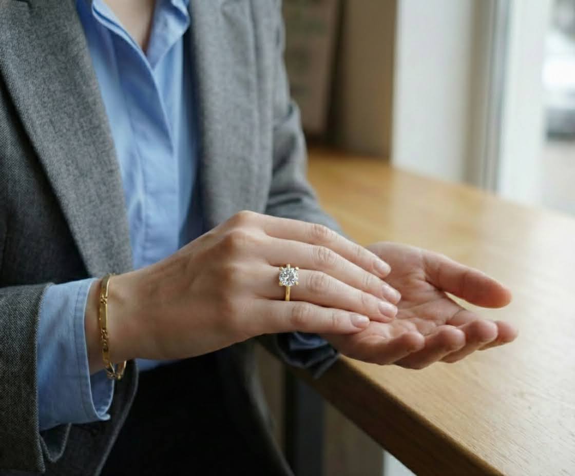 De gouden ring met centrale zirkonia steen is een prachtig sieraad om te dragen.