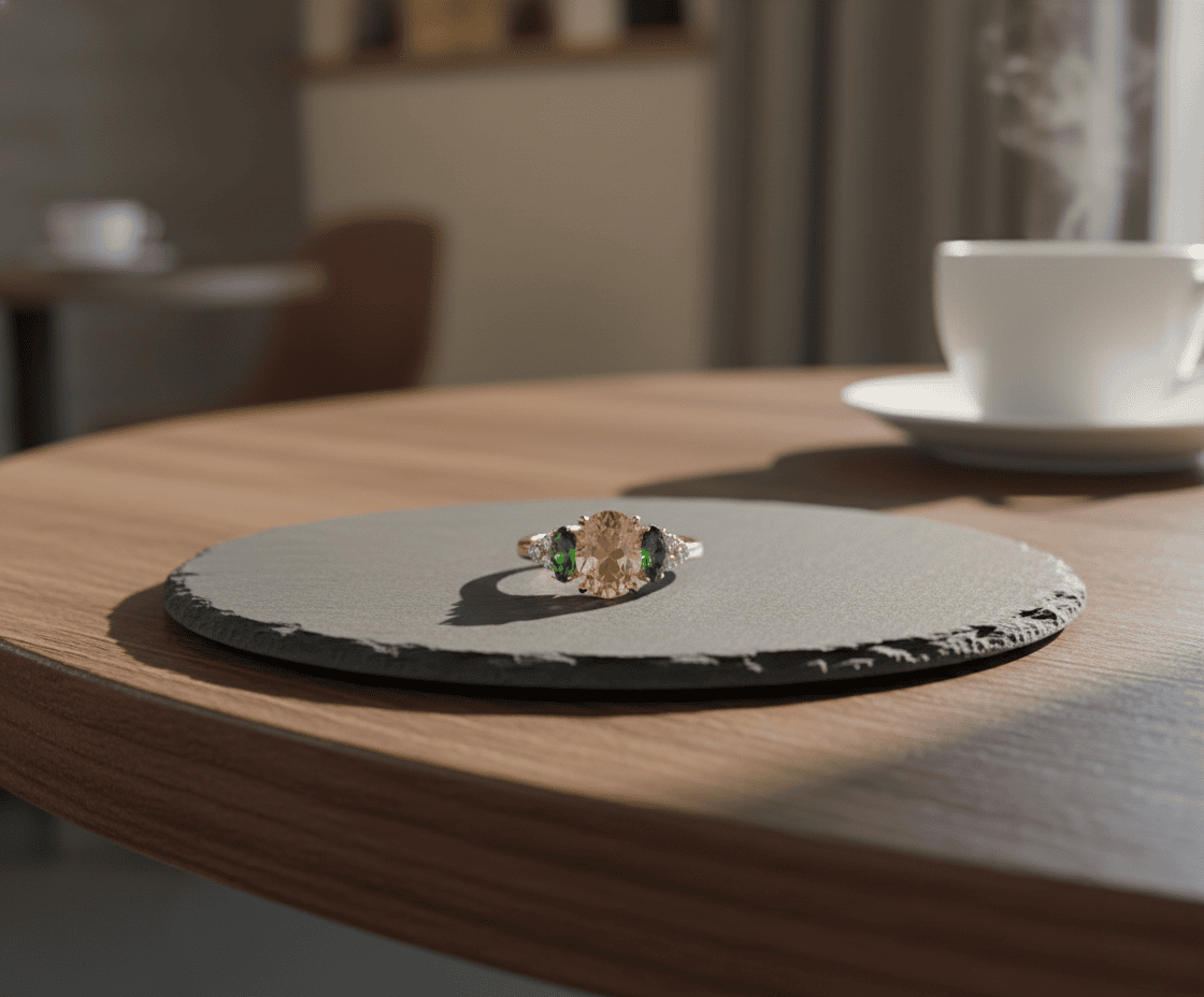 De gouden ring met citrien en smaragd is een prachtig sieraad om te dragen. Deze ring heeft een uniek ontwerp dat direct in het oog springt.