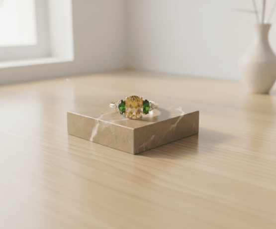 Gouden ring met citrien en smaragd