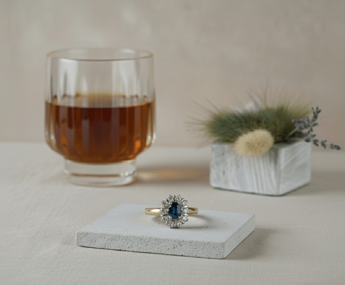 This gold ring with diamond and sapphire was made by the Master Goldsmith of Atelier Christian
