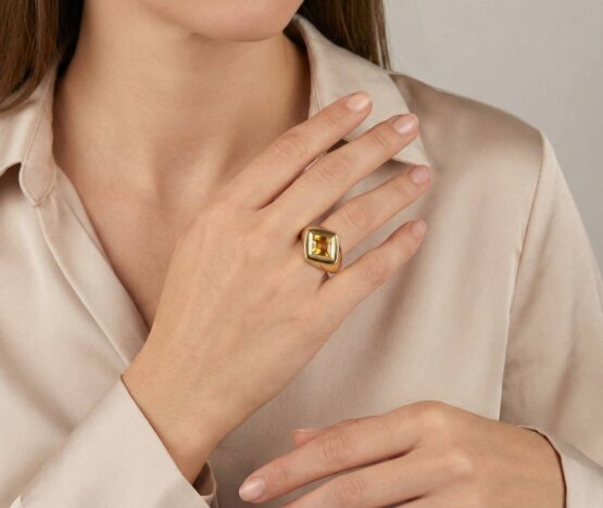 Deze gouden ring met marquise citrien is een prachtig sieraad om te dragen.