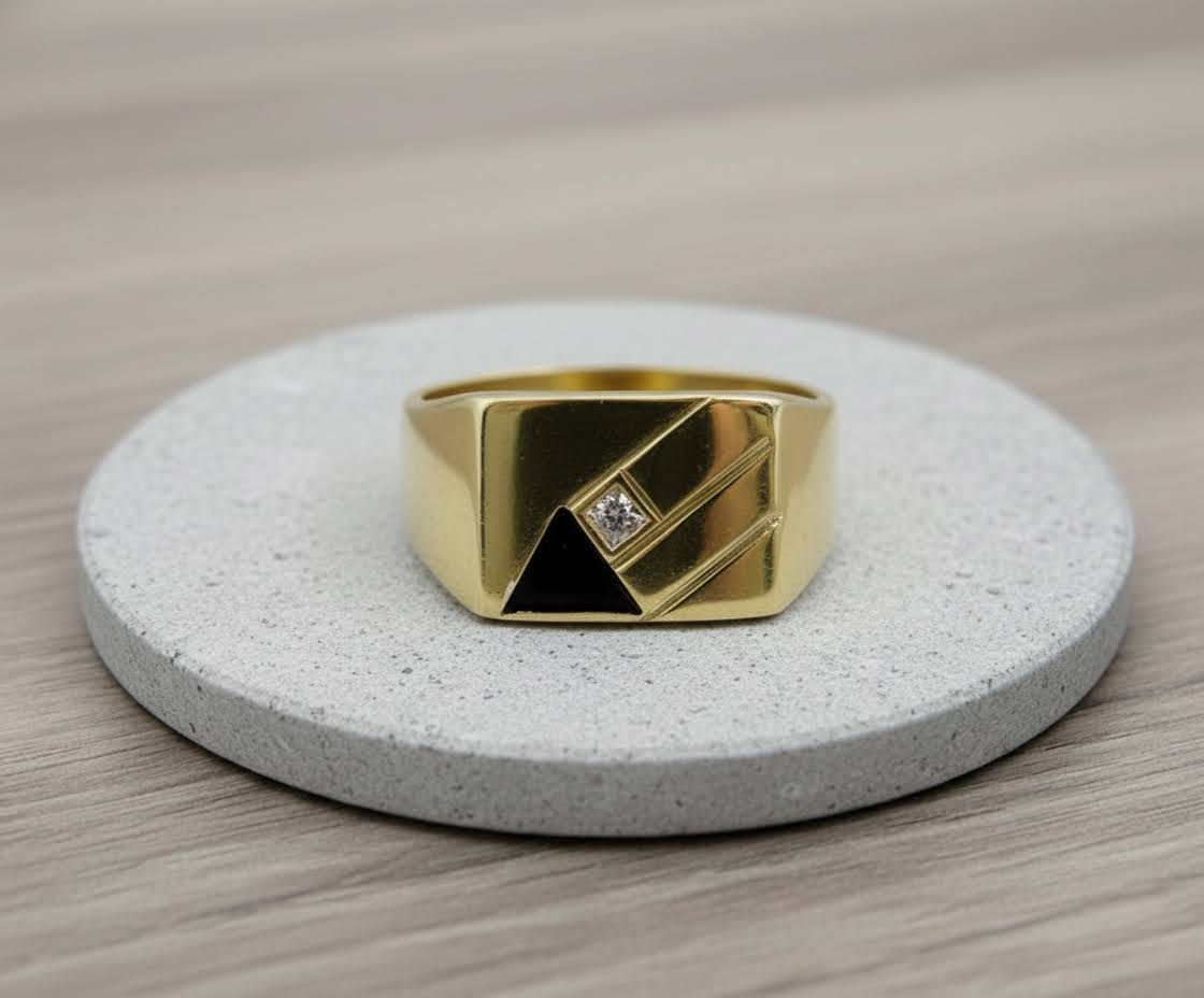 Bestel uw 14 karaat Atelier Christian gouden ring met onyx en diamant direct via atelierchristian.nl!