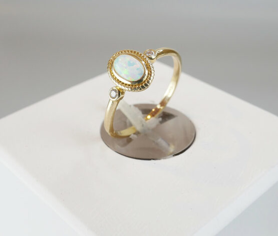 Deze gouden ring met opaliet is een prachtig sieraad om te dragen.