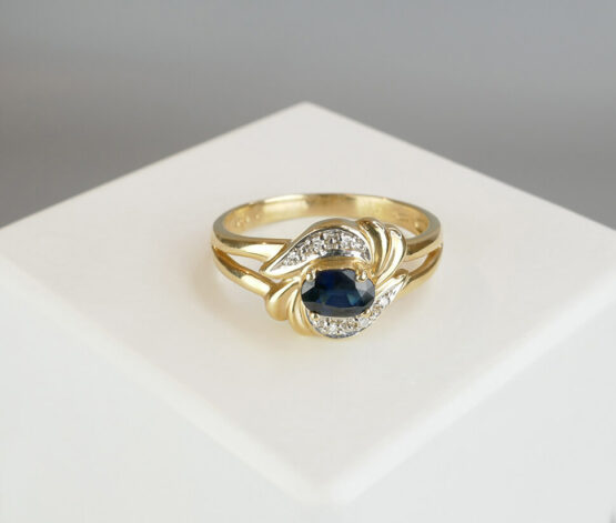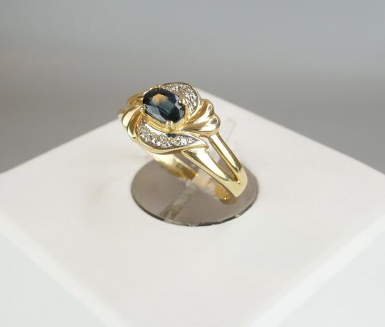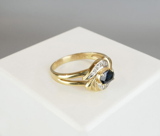 Gouden ring met ovale saffier en briljanten