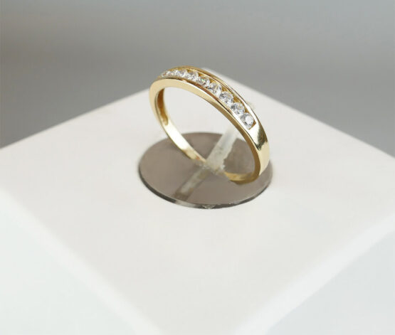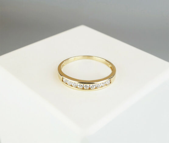 Deze gouden ring met rail zirkonia is een prachtig sieraad om te dragen.