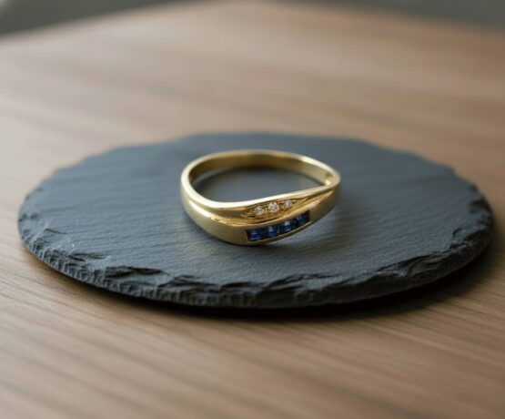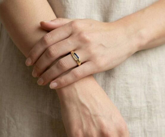 De gouden ring met saffier en diamant is een prachtig sieraad om te dragen.