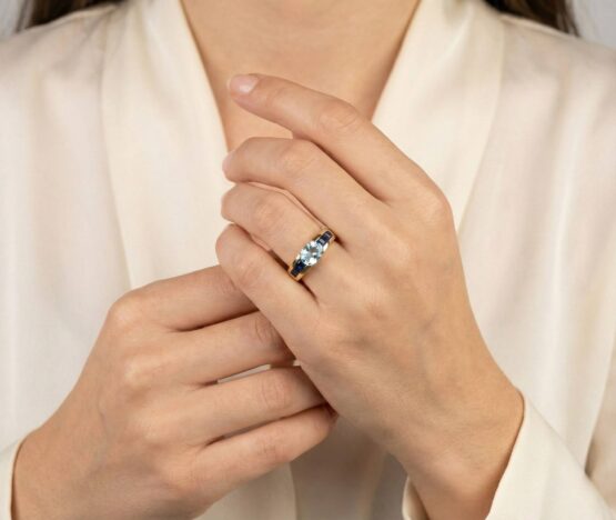Houdt u van saffier? Saffier voegt als schitterende edelsteen een waardige uitstraling toe aan de drager. Dit hemelsblauwe edelgesteente is een kostbare edelsteen die in de natuur gevonden wordt. Ieder saffier heeft zijn eigen fonkeling en kleur waardoor geen enkele saffier hetzelfde is. Als juweel staat saffier symbool voor rijkdom. Deze geel gouden ring met echte, natuurlijke saffier is een prachtig sieraad. Bekijk nu onze uitgebreide collectie saffieren sieraden.