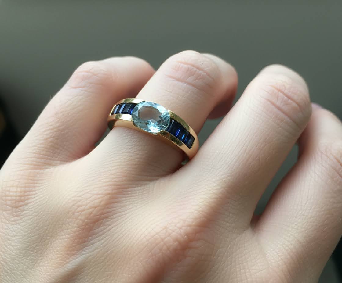 De gouden ring met saffier en topaas is een prachtig sieraad om te dragen. Deze ring is gemaakt door de Meester in de Goudsmeden van Atelier Christian ![]()