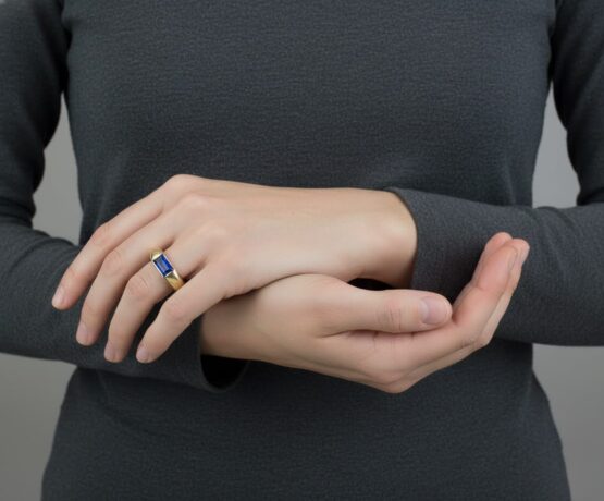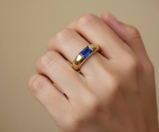 Deze gouden ring met synthetisch saffier is een prachtig sieraad om te dragen.