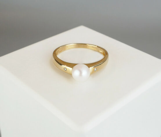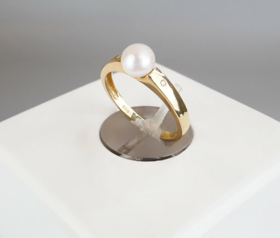 Gouden ring met witte parel en 2 diamanten