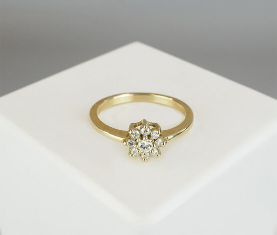 Deze ster zetting ring met diamanten is een prachtig sieraad om te dragen.