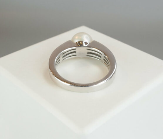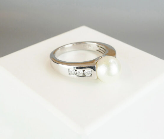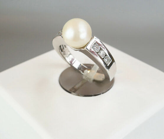 Deze wit gouden ring met parel en diamanten is een prachtig sieraad om te dragen.