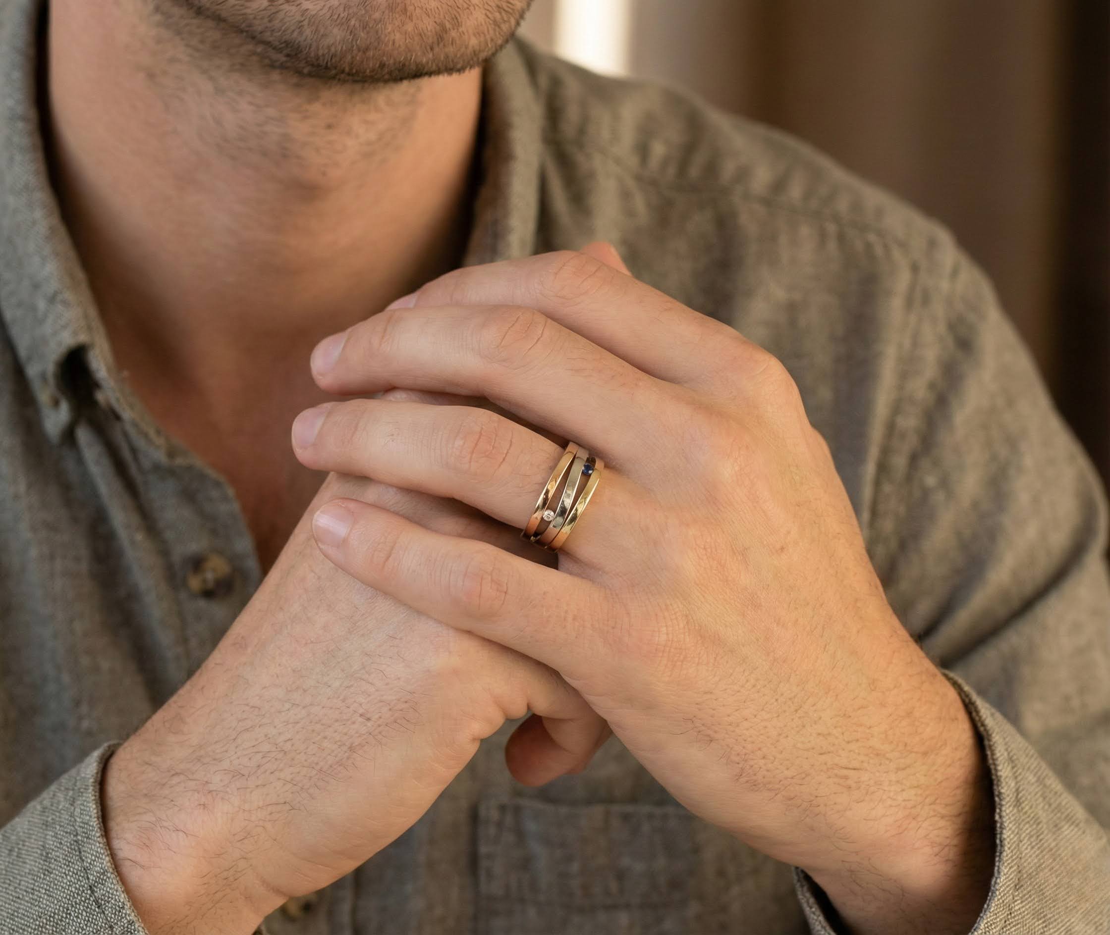 Draagt u graag tricolor ringen? Bestel uw Christian 14 karaat gouden tricolor ring met diamant en saffier direct via atelierchristian.nl!